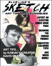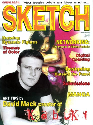 Finally, a magazine created for comic book creators. Sketch Magazine offers valuable information for comic book creators new or established. Featuring tips on penciling, inking, writing, computer coloring, and many more informational articles by creators in the comic book industry. The first issue features Kabuki’s creator David Mack. David offers a special “how-to”