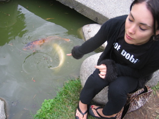 Watching Koi fish at the Japanese garden