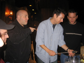 David Engel and Chris from Activision make Smores at Saddle Ranch with Brian Michael Bendis