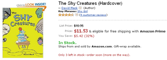 #6: I'm hearing from different sources that my children's book "The Shy Creatures" is getting hard to find. It looks like a few left on Amazon.