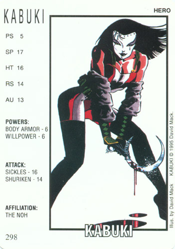 · The artwork for the first version of the card debuted as a black and white image on page 8 of Kabuki: Dance of Death