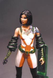 Sculpted by Clayburn Moore! This figure features a new head sculpt without the mask, and features a new outfit along with a very detailed tattoo. It depicts the doppelganger Kabuki from David Mack's critically acclaimed Image Comics series! Blister card packaging.