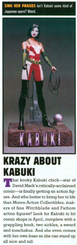 · The spotlight on the Kabuki action figure appeared on page 91